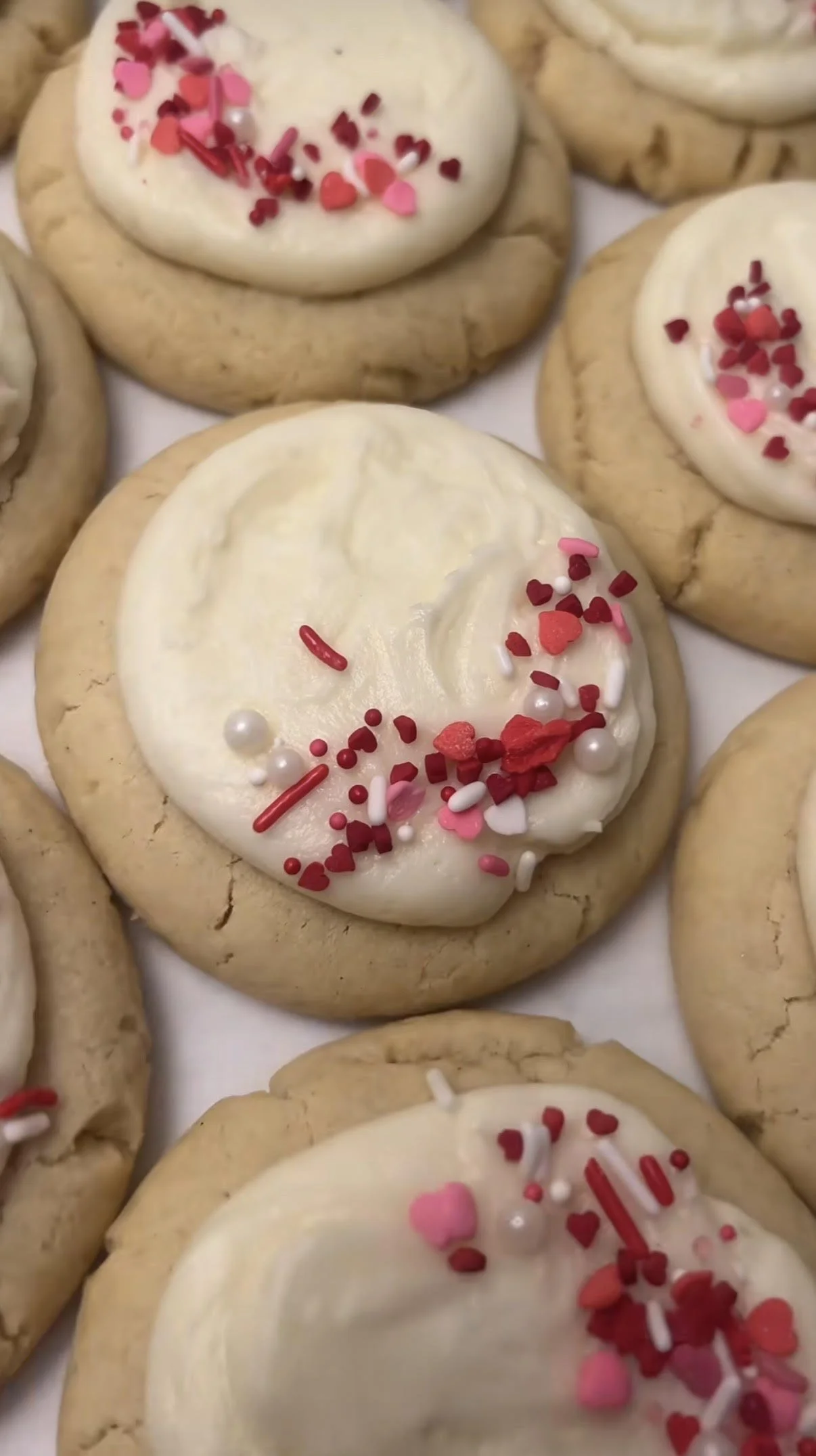 Soft sugar cookies topped with sweet buttercream frosting and sprinkles.